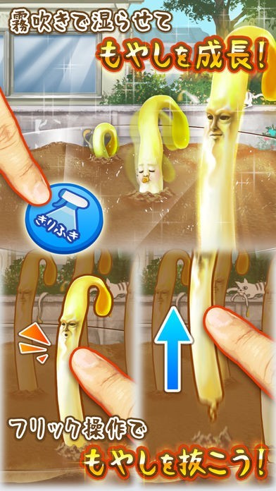個性豊かなもやしを育て、フリック操作でもやしを引っこ抜け!図鑑のコンプリートを目指して楽しめ、気分転換に最適