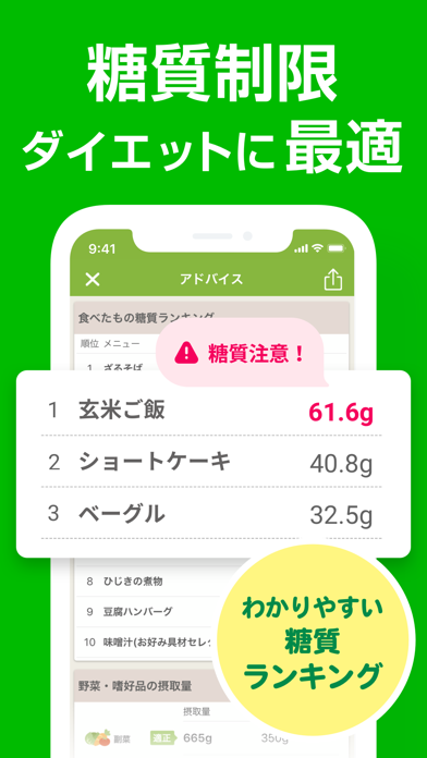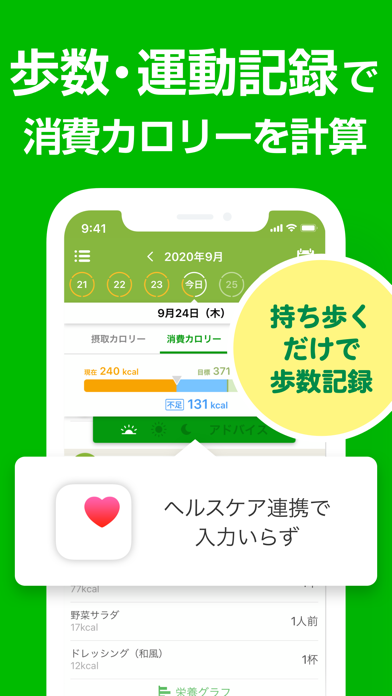 毎日の食事メニューを記録して自身の摂取カロリーの調整を図っていくダイエットサポートアプリ。目標体重に合わせてグラフを確認し進捗を視覚的に確認でき、iOSのヘルスケアアプリとの連動が可能でウォーキング等の運動データを細かく反映させることもできます。専門の栄養士が、普段の食事がダイエットに適しているのかを点数で評価してくれるので、自宅にいながらも本格的なダイエットサポートが受けられるのが大きな特徴です。体脂肪率や生理日等の記録も一緒に行えるので体調管理のサポートツールとしても活用することが可能です。