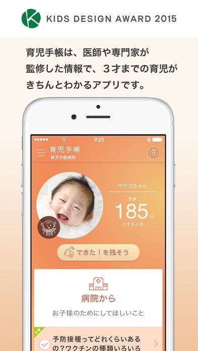 病院の先生や専門家が監修し、3歳までに必要な情報を入手することができます。日々の写真をコメント付きで管理もできます。