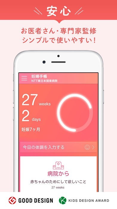 赤ちゃんを望んでる人にとって、妊娠することはとても嬉しく喜ばしいことです。しかしそれと同時に未知なる体験に不安や戸惑いもあります。お腹の中にいる赤ちゃんの成長や様子は病院のエコー以外で確認するすべはなく、見えないぶん不安は大きいです。赤ちゃんはいまどのくらい育っていて、どんな栄養をとればいいのか、どんな生活をすればいいのか、色々学びたいことが出てくる方が多いです。 そんな方のために、お腹の赤ちゃんの様子を毎日配信、週数ごとにオススメレシピを教えてくれるアプリ「妊娠・出産を毎日学べるアプリ_妊娠手帳」 毎日更新される赤ちゃんの様子は、妊娠生活をより楽しく、充実させてくれます。気をつけたい体重管理や、週数別に教えてくれるオススメレシピなど、情報収集から自己管理までこのアプリ1つでできます。通っている病院がアプリと連携しているところなら、病院からアドバイスも届きます。医者や専門家監修のアプリなので情報は正確かつ適切で安心です。