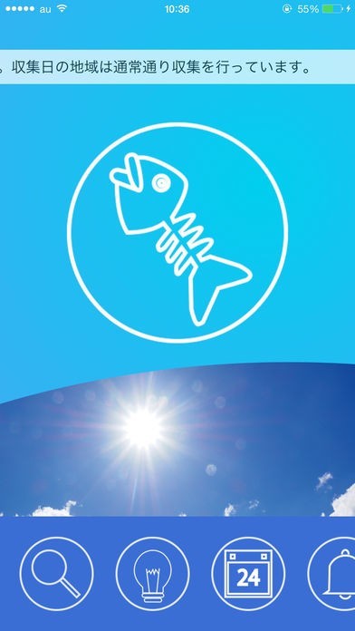 トップ画面では、その日の収集品目と天気が一目でわかります。