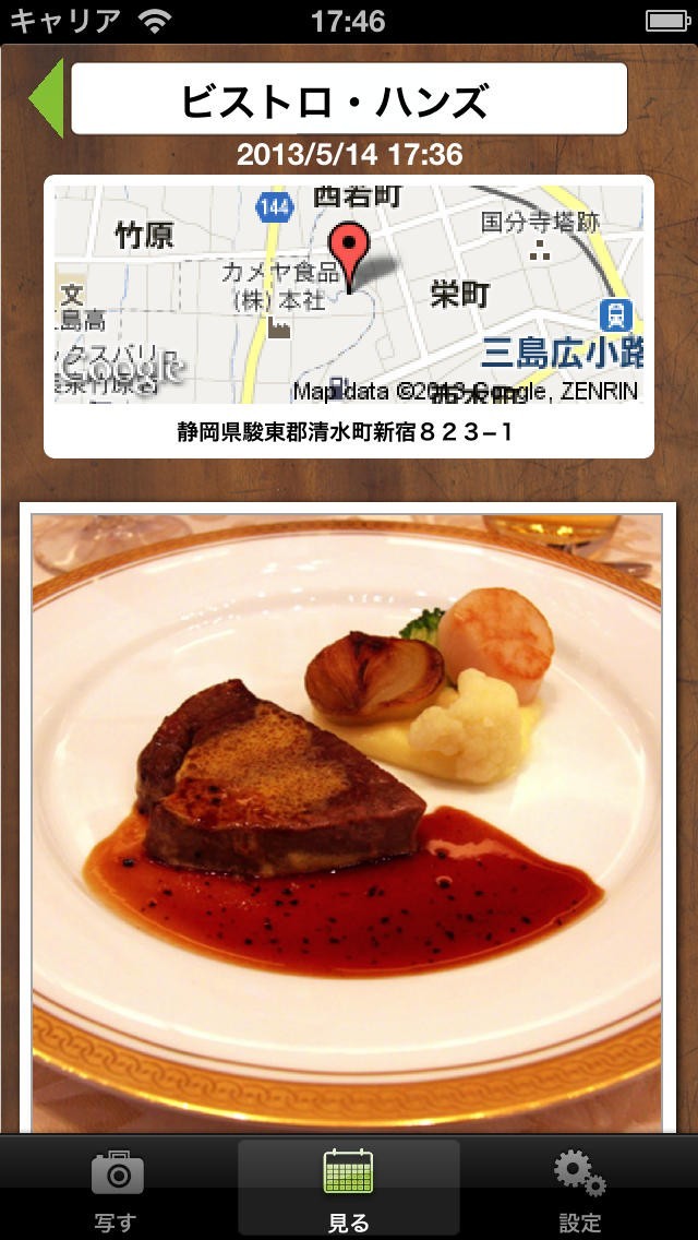 ◆フードログ(e-shopsローカル)では料理の写真にお店の場所などの情報を併せて管理できます。