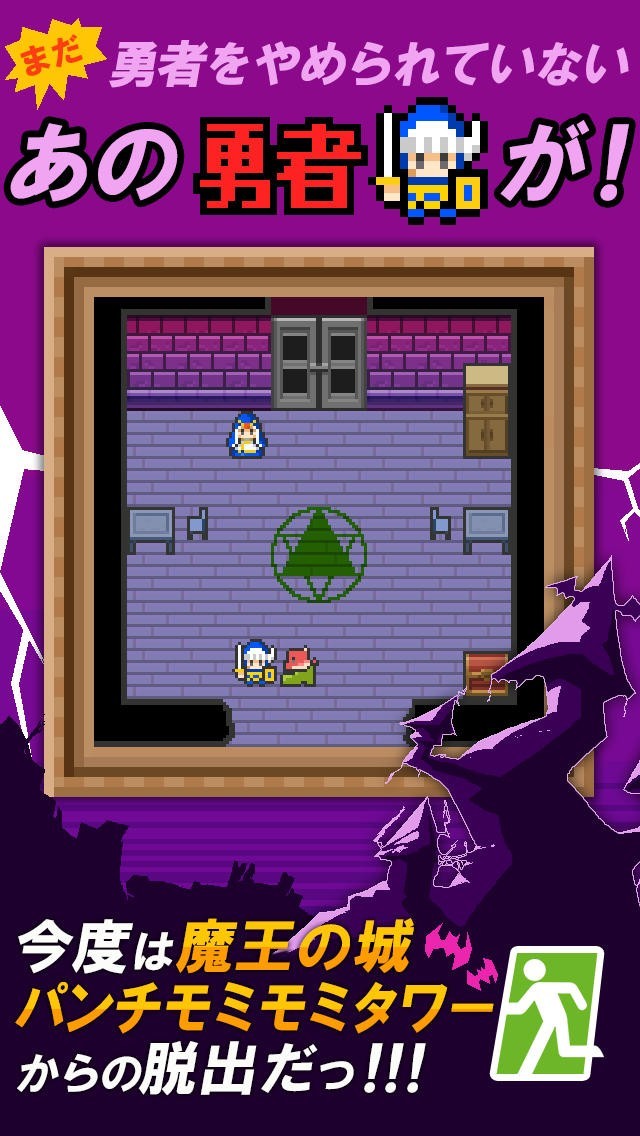 「パンチモミモミタワー」を勇者が脱出するゲーム。脱出ゲームの定番で、画面をタップで探索しながら出口を探していきます。魔法も使えない勇者がダンジョンから脱出したのもつかの間、再び謎を攻略しながら脱出する羽目になった勇者のストーリーとなっています。怪しい場所を調べたり、頭を使って謎を解く発想力が必要。「ヒント屋」を頼ったり、アイテム屋で購入したり、RPGのような部分もあり、脱出ゲームが好きな方だけでなく、初心者でも楽しめるアプリです。