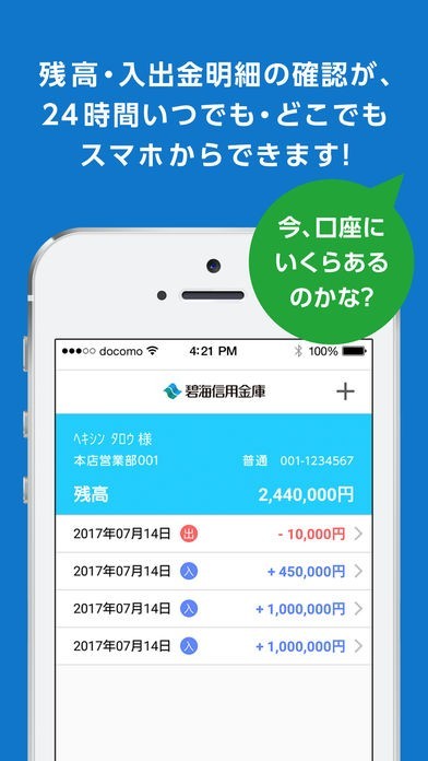碧海信用金庫が公式配信!24時間いつでも楽々残高照会!