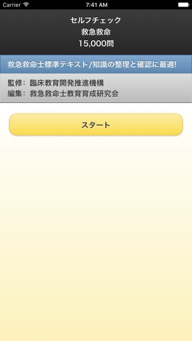 App Storeより引用新たに『セルフチェック救急救命 15,000問 救急救命士標準テキスト/知識の整理と確認に最適!』をリリースいたします。「救急救命士標準テキスト」が教科書だとすれば、問題集に相当するこちらのアプリ、すべての問題には最新の改訂第9版「救急救命士標準テキスト」の該当ページを明記しており、事前学習はもちろん、復習にも役立てることができます。