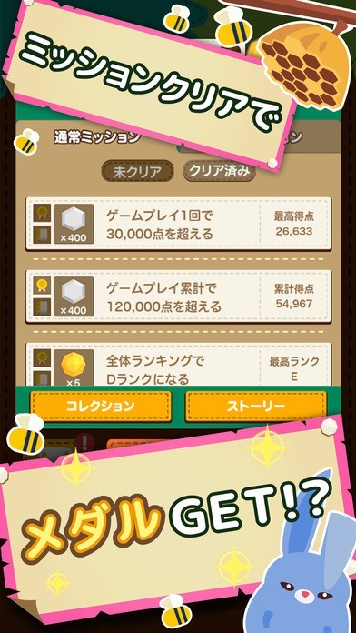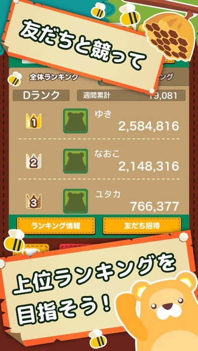 「ハニープラス」では、1から9までの数字を指でつなげることによって足して10になるようにするというゲームです。よって、脳トレにもなるので、お子さんからお年寄りの方まで楽しむことができます。 中には必殺技を発動したり、コンボをつなげたりして高得点を目指せますし、そのうちに「レアハニー」が登場するので、それを目指して遊ぶこともできます。 また、ミッションも用意されていてクリアすると称号メダルが得られるので、それをコレクションするという楽しさもあります。 それ以外にもランキングによって友だちと競い合うことができるので、モチベーションアップできます。