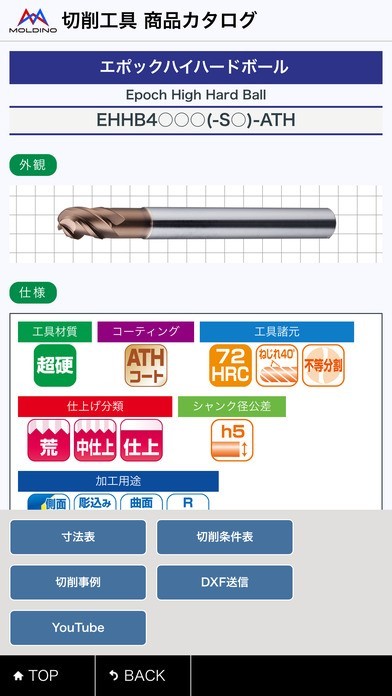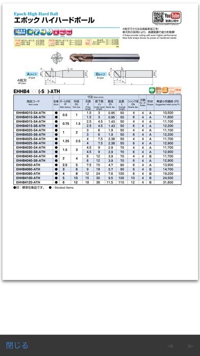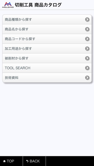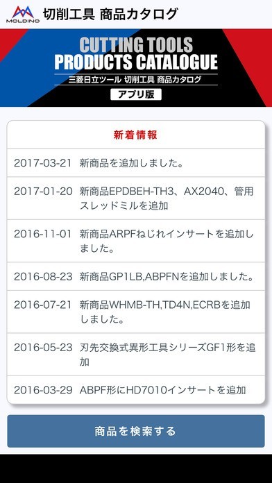 金属加工時に使う切削工具などの商品を、写真つきで見られるカタログアプリ