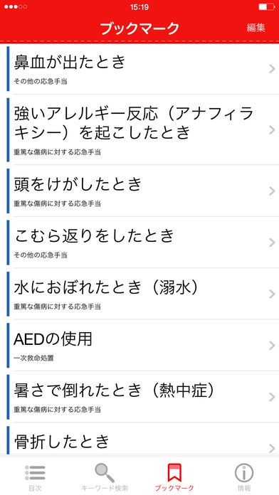 「応急手当」では、緊急時における正しい対処法が載った情報アプリです。階段から落ちて捻挫した時や骨折の疑いがある時にもアプリ内の検索バーからカンタンに目的の対処法を知ることができます。自分が思っていた対処法と異なる場合もあるので、本アプリで正しい方法を身に付けておくことが後遺症も無く生命を維持することへ繋がります。文章ばかりで見ずらいのは難しいといった方も大丈夫。イラスト付きで説明してあるので緊急時に文だけでは理解しにくい時にも有効です。また、応急処置に関するコラムも閲覧出来るので暇な時間にコツコツ見ていけば知識の拡大にもなります。