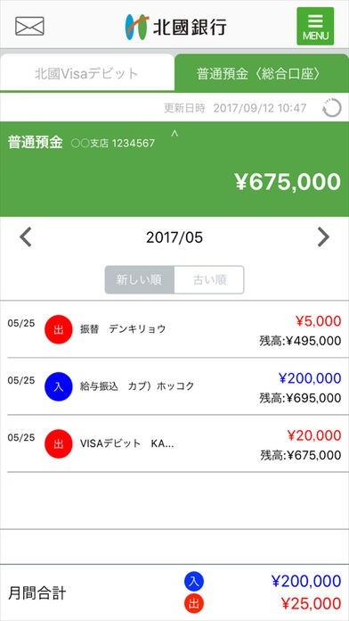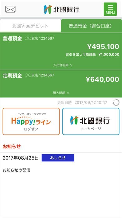 北國銀行の口座情報をスマートフォンからチェックすることが出来るアプリとなっていて、預金残高や入出金明細の確認をリアルタイムで行うことが出来るようになっています。