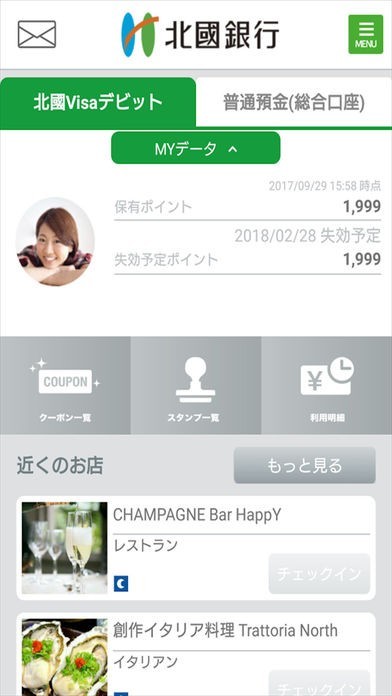 デビットカードを利用しているユーザーの場合には、デビットカードの利用で貰うことが出来るポイントを確認することもできるようになっているほか、カードを利用できる店舗の検索も可能です。