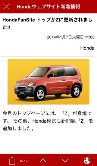 Hondaの最新情報が配信されるアプリ!画像付きで読みごたえがある