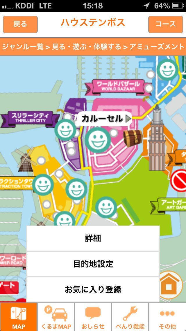 館内の人気スポットやオススメの場所をまとめて表示出来るようになっています。GPSを利用して園内のスタンプラリーにチャレンジ出来るのも利点でしょう。GPSで現在地も確認していけます。