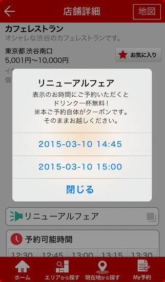 アプリユーザー限定。ご予約のお時間に応じて、お店のお得なプロモーションをゲット。その時間にご予約すると自動的に確定するので、お店でクーポンなどを見せる必要はありません。