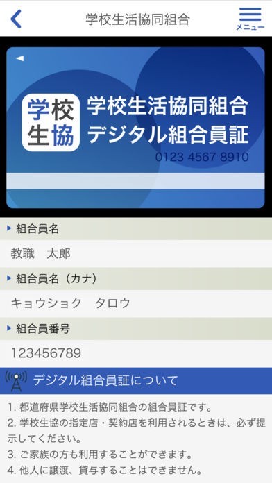 学校生活協同組合 デジタル組合員証のスクリーンショット