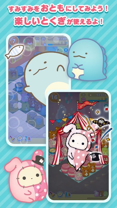 まったりパズルは、すみっこに集まったかわいいキャラクターを消していくパズル