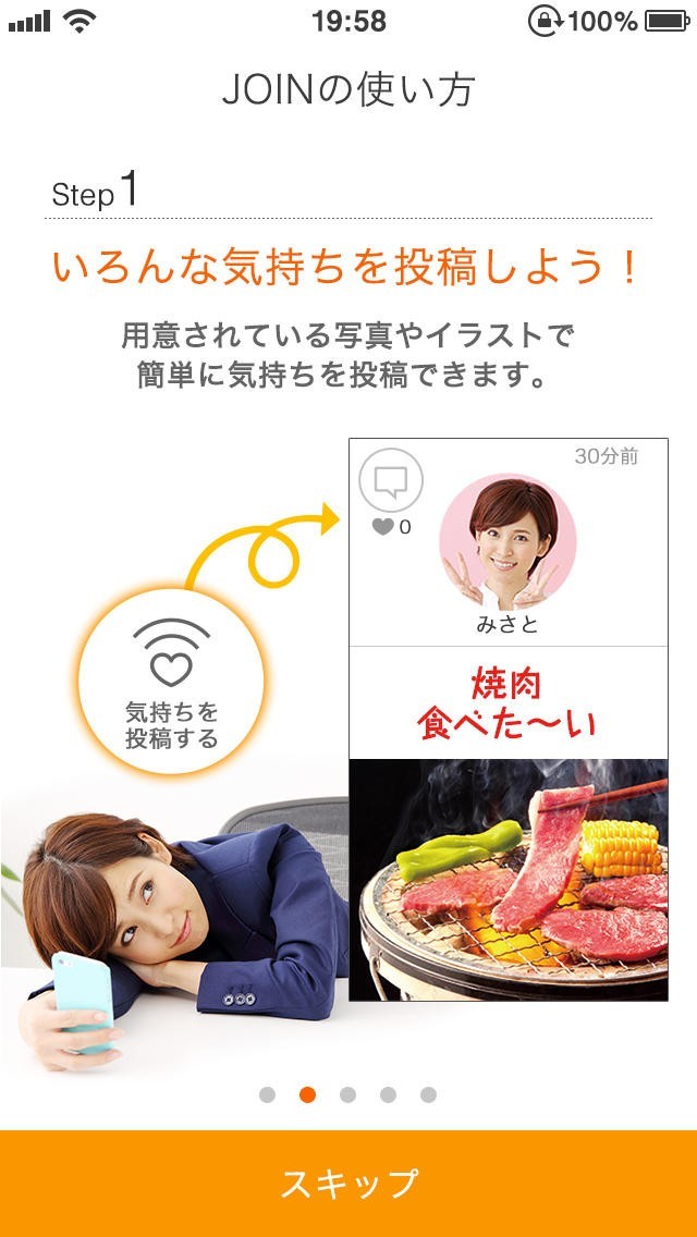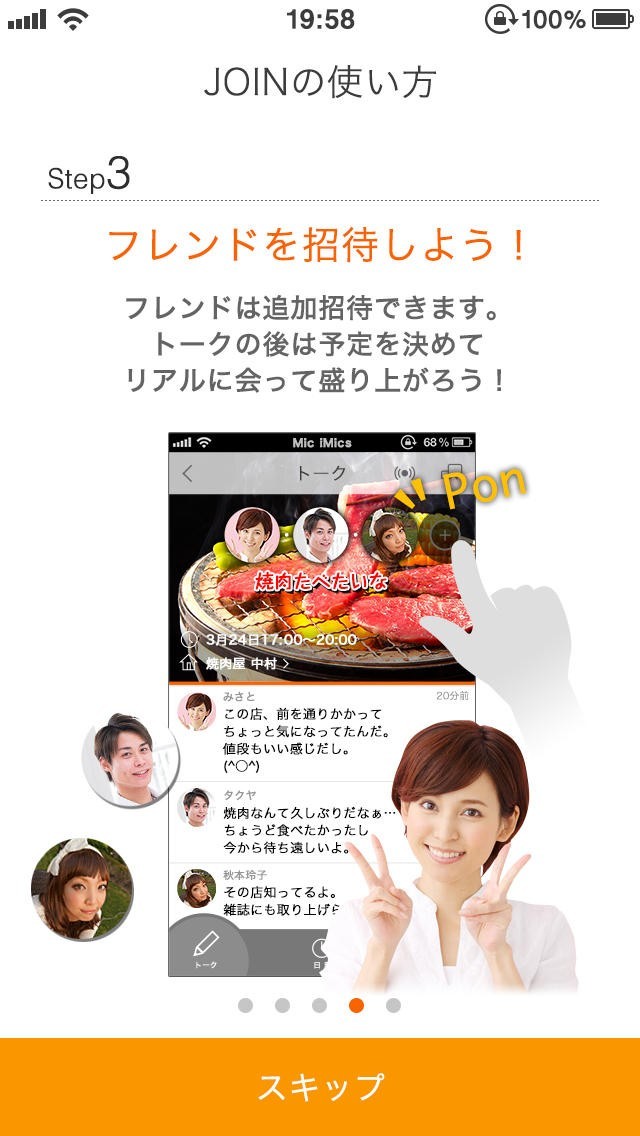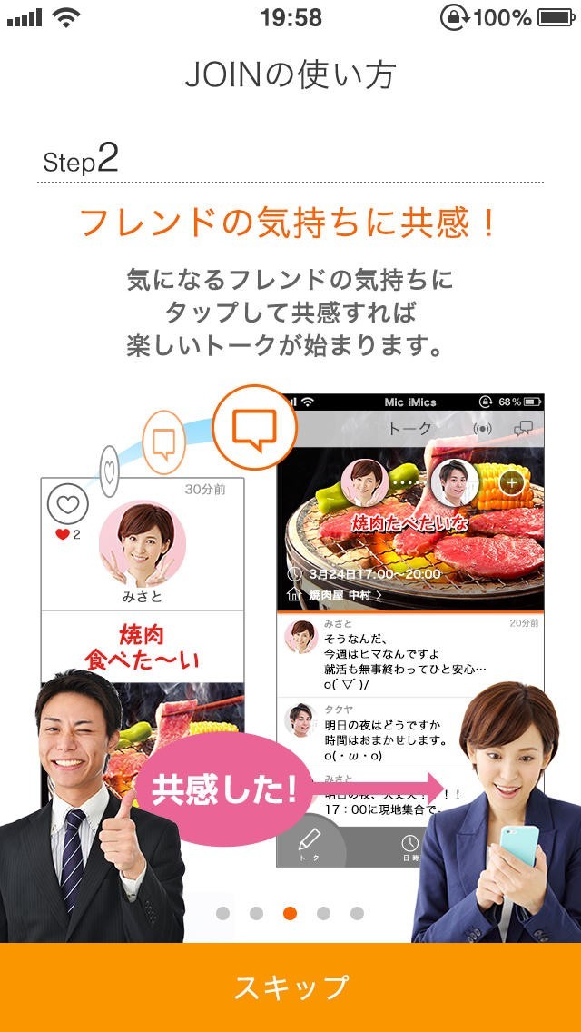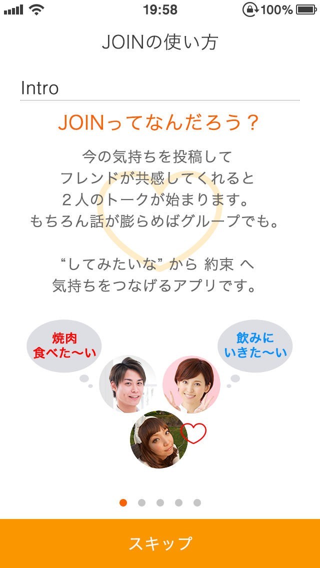 参加してみたいイベントや、行ってみたいランチ、一緒に行ってくれる人がいれば気持ちも盛り上がりますよね。 「JOIN」は、行ってみたい、やってみたいとサポートしてくれるコミュニケーションSNSアプリです。 楽しそうなイベントを見つけたら、まずは行ってみたい!と気持ちを投稿してみましょう。 共感するメンバーがハートを送信してくれたら、誘ってみるチャンスです! 使いやすいトーク機能を搭載しており、アプリ上から直接声をかけることができるのが嬉しいポイント。 待ち合わせ場所なども手軽にトークで決めて、あとは直接集まってワイワイ騒いじゃいましょう!