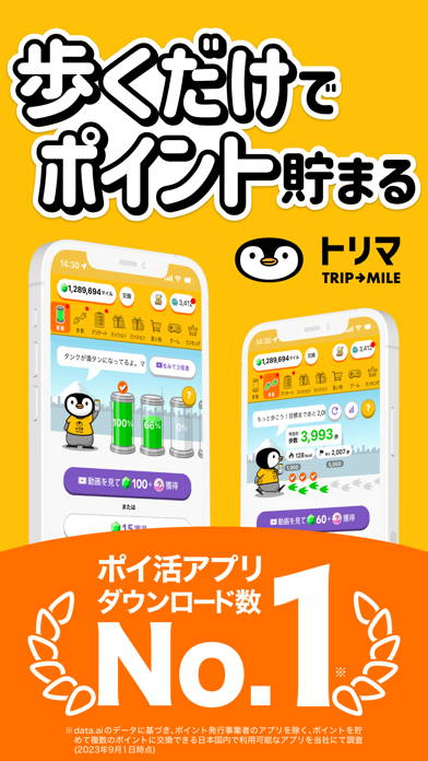 トリマ-移動・歩数がポイントに!お小遣い稼ぎの万歩計アプリのスクリーンショット