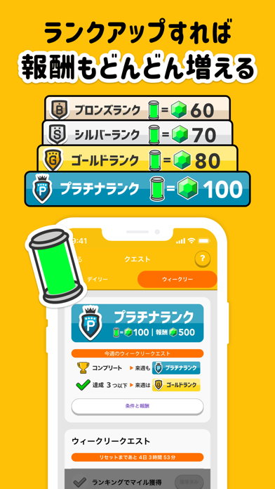 ・一日の歩数に応じてマイルが貯まります。