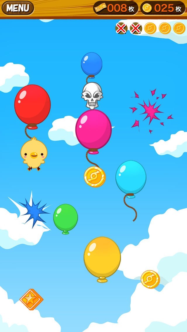 バルーンから落ちてくるコインを5回落としてしまうとゲームオーバーとなってしまうルールです。また、時にはドクロマークが出現して間違えてタップしてしまうと一発でゲームオーバーになってしまうため手応えも抜群です。