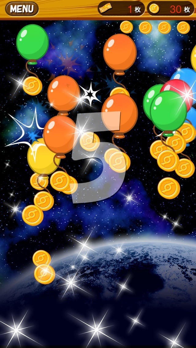 次々に出てくる風船からばら撒かれて落ちてくるコインを、逃さず拾っていく!