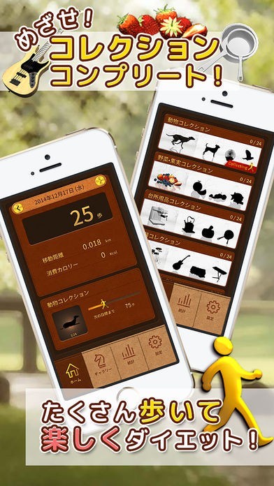 「歩いてコレクション」は、万歩計としての機能にアイテム収集という面白味を加えたウォーキングアプリです。 歩くだけで収集できるアイテムは動物や乗り物など多岐にわたり、コレクションするのを楽しみにウォーキングが続けられるよう工夫されています。 その日の歩数、歩行距離、消費カロリーを表示するだけでなく、統計を見ることで過去の振り返りもできる仕組みになっているのが特徴です。 これからウォーキングを始められる方に最適のアプリです。