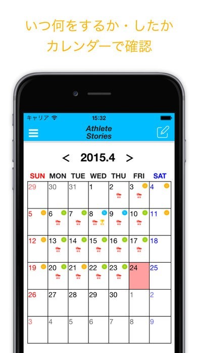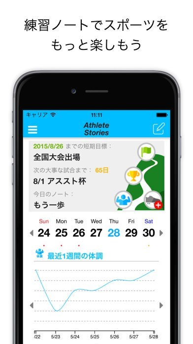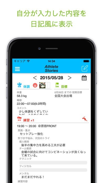 アスリートが日々トレーニングや食生活をコントロールするため、練習ノートやカレンダー機能によって徹底的にプロスポーツ選手のような肉体に成長するためのプロセスを描けます。