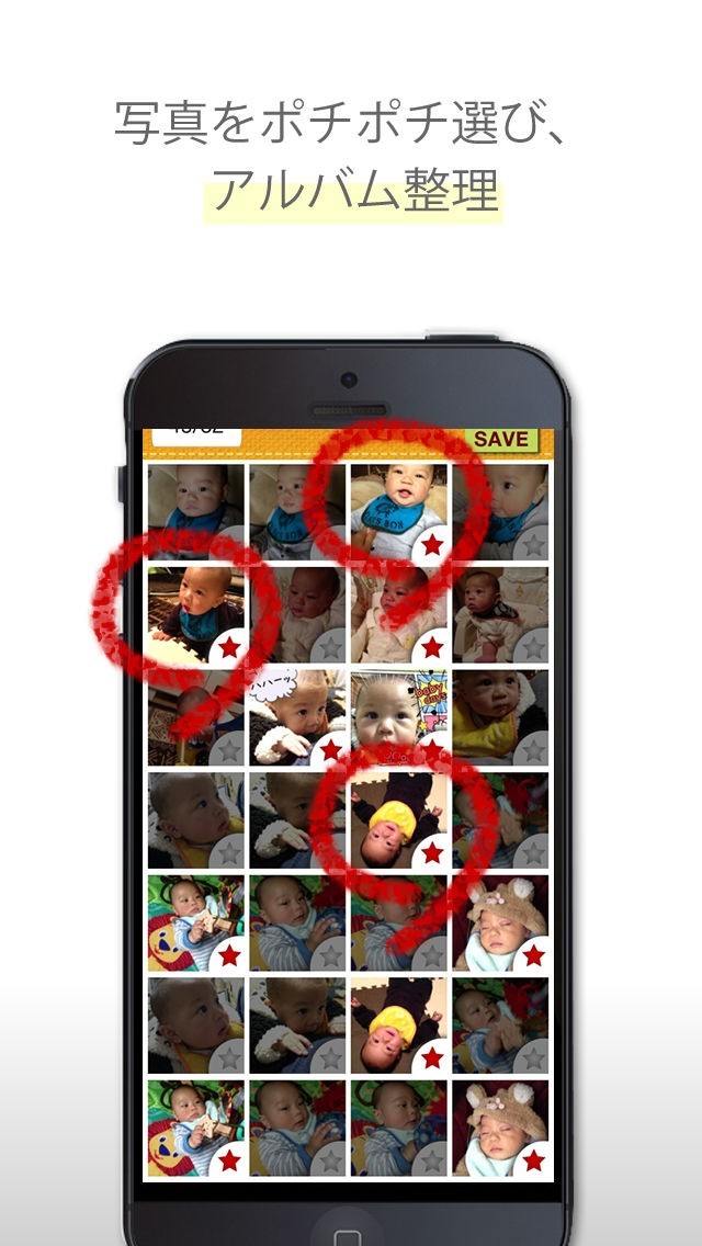 どんどん赤ちゃんの写真を撮影すれば、アプリが自動でアルバムにしてくれる!