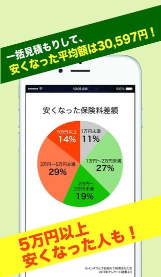 1度に最大20社の保険会社を比較できて、ほとんどの利用者が満足しているアプリ!