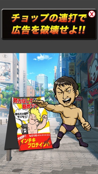 小橋のチョップで広告を破壊出来るアクション付き!!