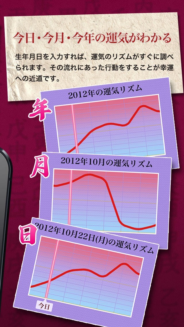 ※このアプリは旧暦のこよみを使用して占っておりますので、運気が変更されるタイミングは西暦の暦の切り替えとはズレています。