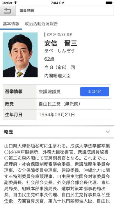 政治家や国会議員の略歴を検索する事が可能なので、選挙やロビー活動の際に重宝するでしょう。顔写真の表示に対応していて、生年月日や政党等のデータも閲覧していけます。