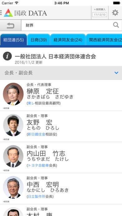 政界や財界の情報を調べたい時に重宝!顔写真も一覧で表示出来る