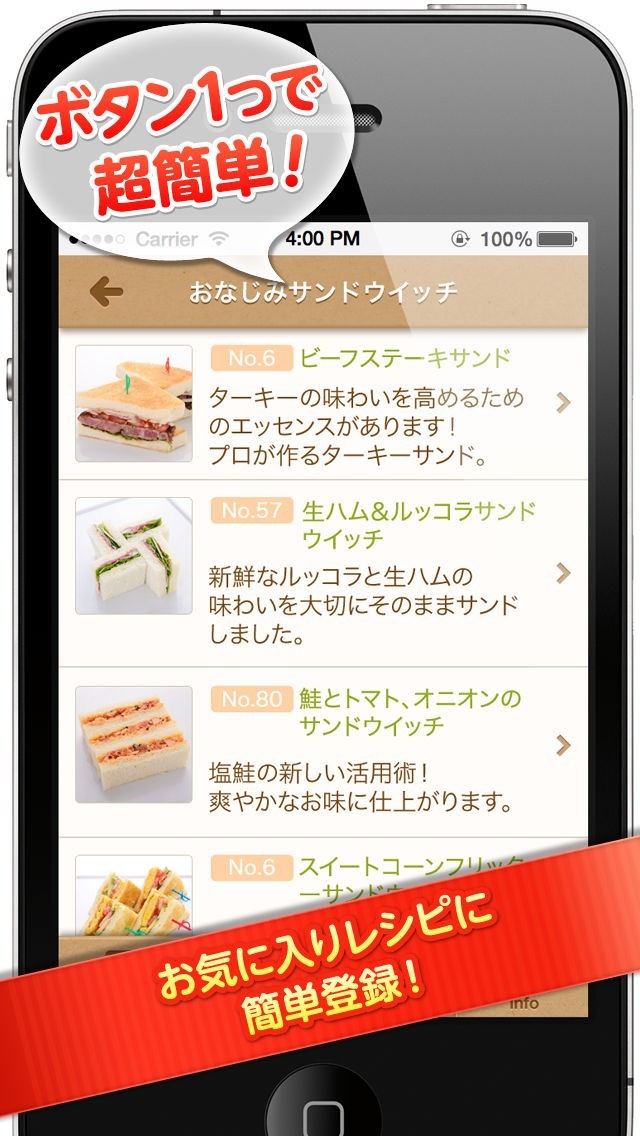 いつものサンドイッチを、ホテルのように豪華で美味しく魅せるアプリです。