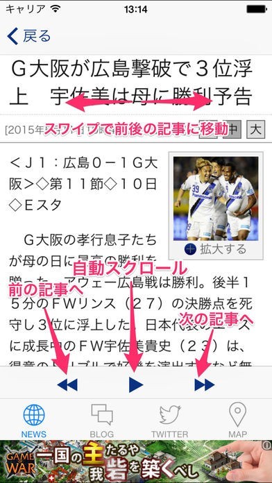 App Storeより引用ガンバ大阪に関するニュースや選手のブログを閲覧するニュースリーダーです。