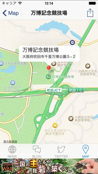 ・ 現在地からスタジアムへのルート表示(iOS7以上)