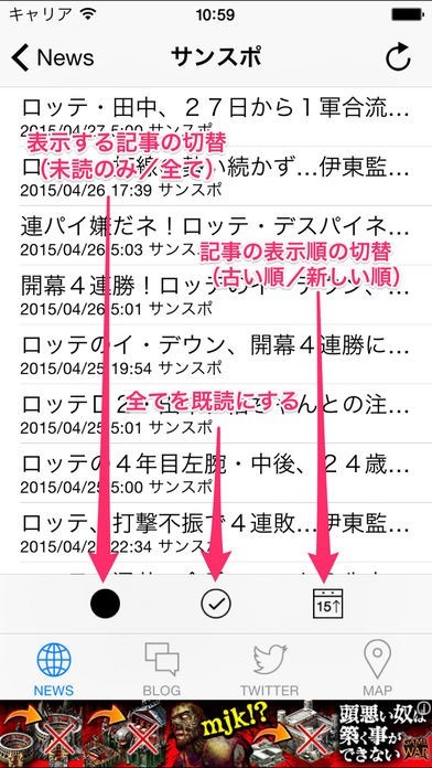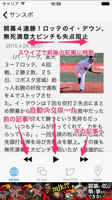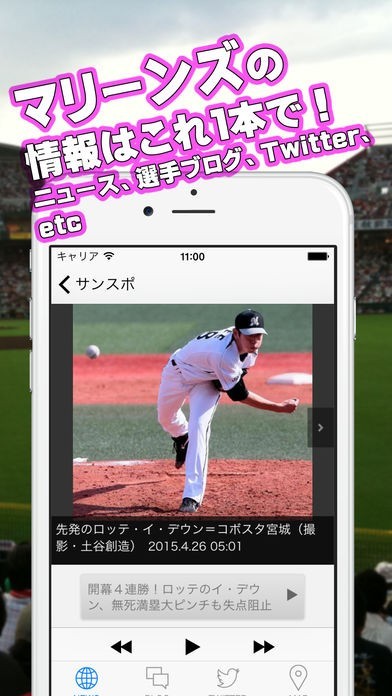 App Storeより引用千葉ロッテマリーンズに関するニュースや選手のブログを閲覧するニュースリーダーです。