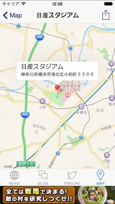 ・ 現在地からスタジアムへのルート表示(iOS7以上)