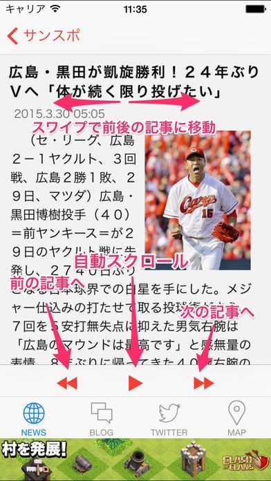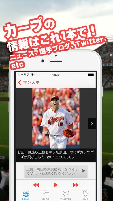 App Storeより引用広島東洋カープに関するニュースや選手のブログを閲覧するニュースリーダーです。