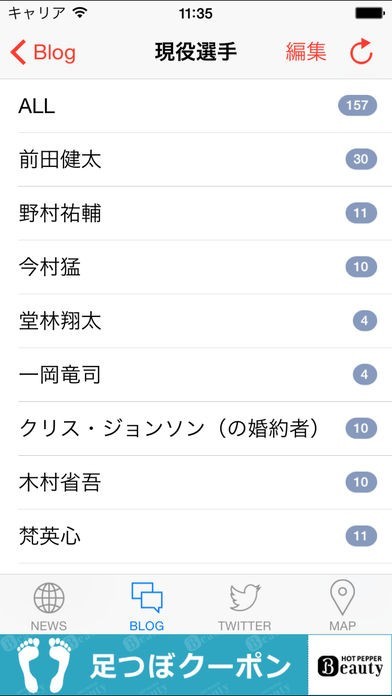 ・ ブログ(選手やOBのブログを閲覧できます)