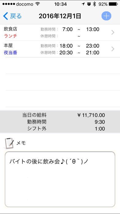 バイトのシフト管理だけでなく、給料計算ができるので、シフトが決まったらすぐに計算してモチベーションを上げています!