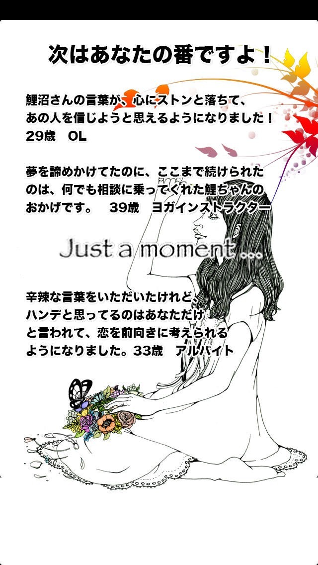 App Storeより引用恋占いは、真理占星学の秘伝の極意を使用し、出会い・恋愛・結婚のあらゆる悩みを解決できるようにした占いアプリです!