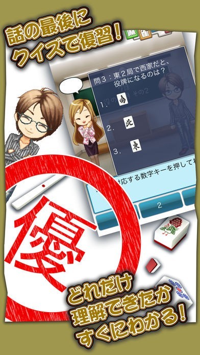初めての人でも簡単に麻雀ルールが分かるようになる解説アプリです。テキストの羅列ではなく、会話形式なので理解しやすくなっています。さらに可愛いアニメーションがルール理解を助けてくれます。