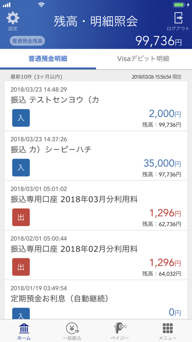 ・最新10件の普通預金取引明細/Visaデビットご利用明細