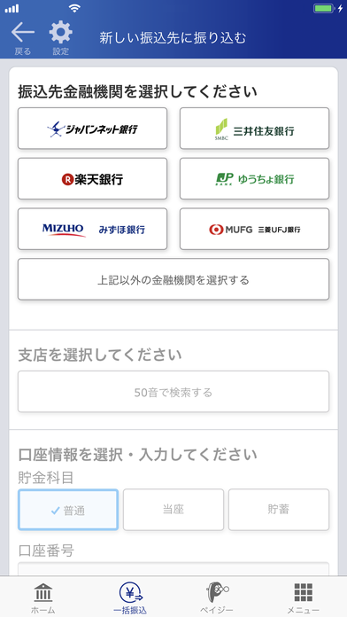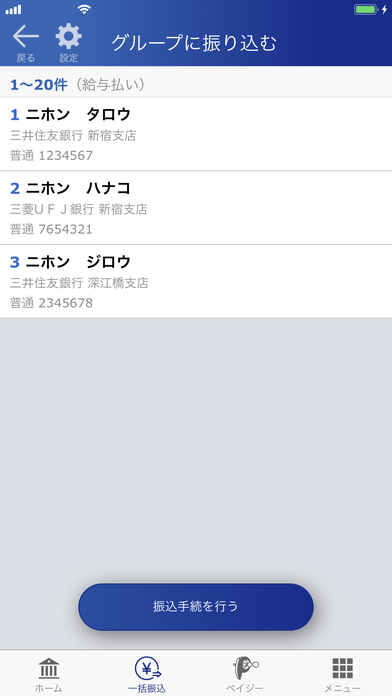 また、複数の振り込みを一度に行える振込機能も搭載しております。