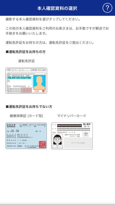 マイナンバーカードや運転免許証、カード型健康保険証で本人確認できる