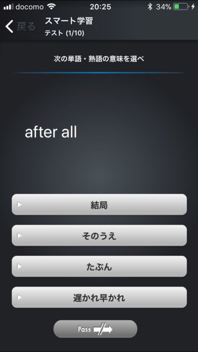 フラッシュカード機能を使えば、通勤ラッシュ時に片手しか使えないようなときでも学習を行えます。