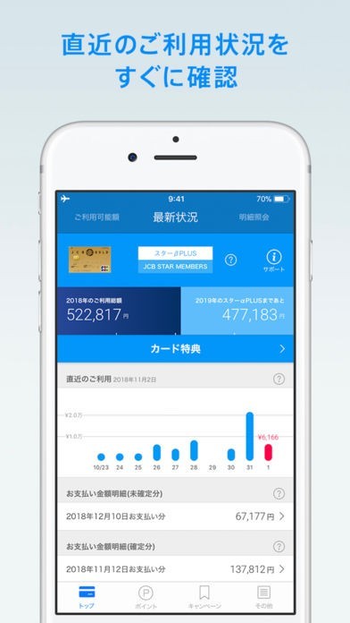 JCBカードの基本情報から、ポイントキャンペーン情報など知りたい情報が一つになったアプリです。