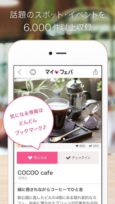 「マイフェバ」は関西・北陸・瀬戸内エリアの旅行や観光について、旬な情報を知ることができるアプリです。関西など西日本方面の人はもちろん、旅行でこれらの地域を訪れる予定の人は是非ダウンロードしておきたいアプリです。人気の観光名所はもちろんですが、「マイフェバ」ではお土産店や雑貨店、芸術やエンタメ情報も充実しているのが特長です。宿泊プランなど「マイフェバ」にしかない特典もあり、とても人気のアプリです。画面にはお洒落なイラストや写真などが掲載されていて、見ているだけでも楽しめます。