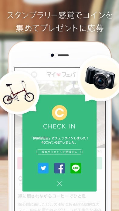 メリット:地域の旅行に特化したアプリのため、他の旅行アプリと比較すると対象地域の情報量が豊富です。 専用コインを貯めてプレゼントに応募すると言う楽しみも用意しています。