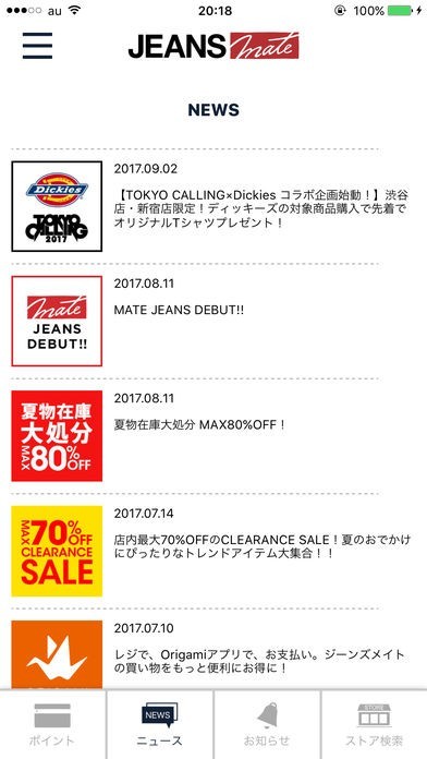 カジュアルファッションブランドのジーンズメイトの最新情報をスマートフォンからチェックすることができる公式アプリとなっていて、新商品やお知らせなどを見ることができます。